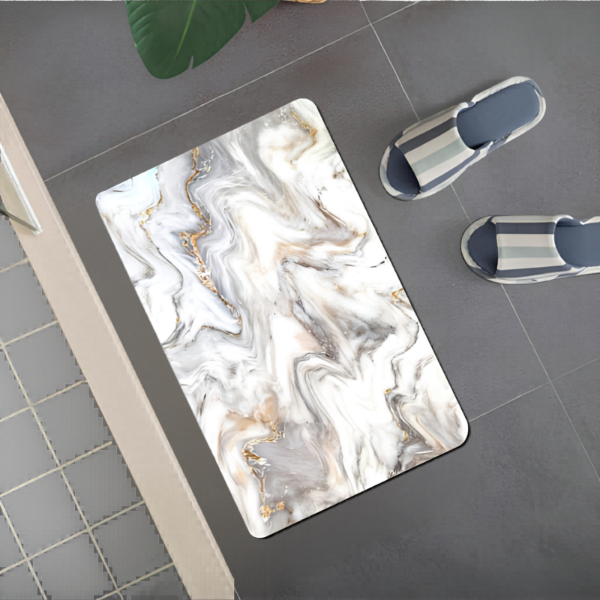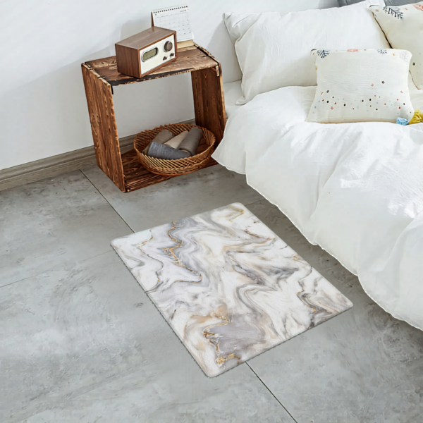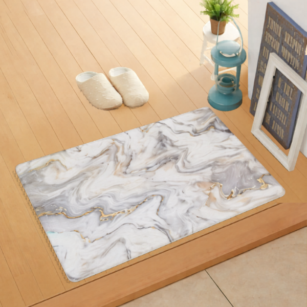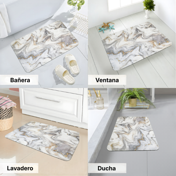 Dale un toque moderno, elegante y funcional a tus espacios con esta alfombra antideslizante cuadrada diseño mármol, ideal para sumar confort, seguridad y estilo en el uso diario.