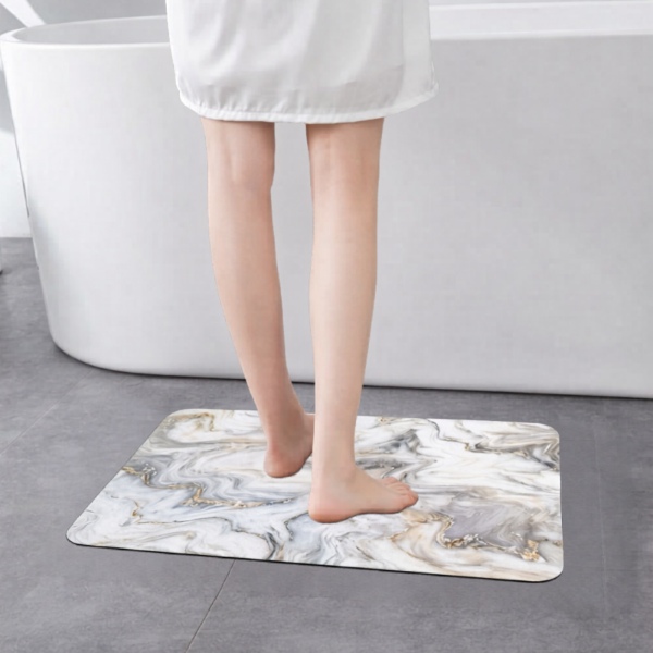 Su formato práctico y decorativo la convierte en una excelente opción para baños, lavaderos o espacios reducidos, aportando una pisada más cómoda y una estética sofisticada que combina muy bien con ambientes modernos.