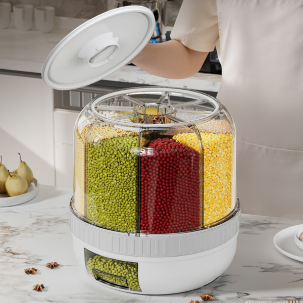 Su mecanismo giratorio permite seleccionar el compartimento deseado de forma rápida y cómoda, facilitando el uso diario en la cocina.