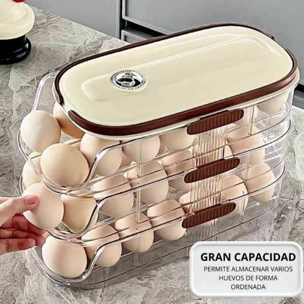 Este organizador es una excelente opción para quienes buscan una solución cómoda, higiénica y funcional para mantener los huevos siempre al alcance y bien protegidos.
