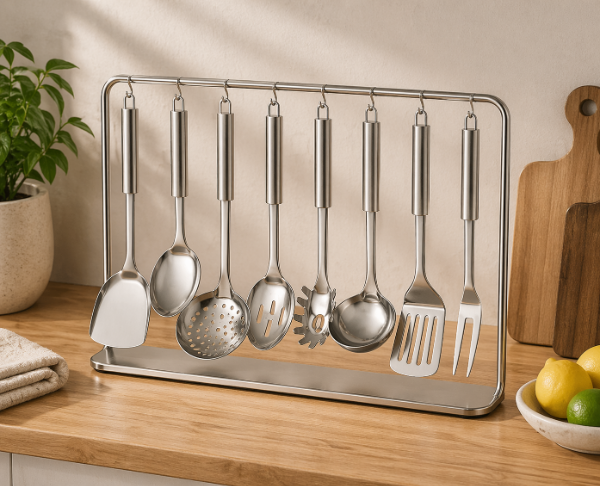 Este juego de utensilios es una opción práctica, resistente y funcional para tener siempre a mano las herramientas necesarias al momento de cocinar.