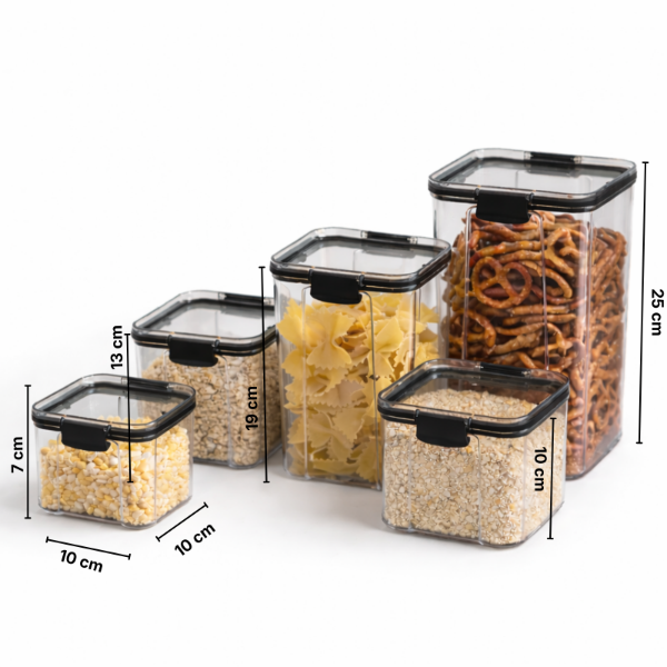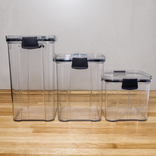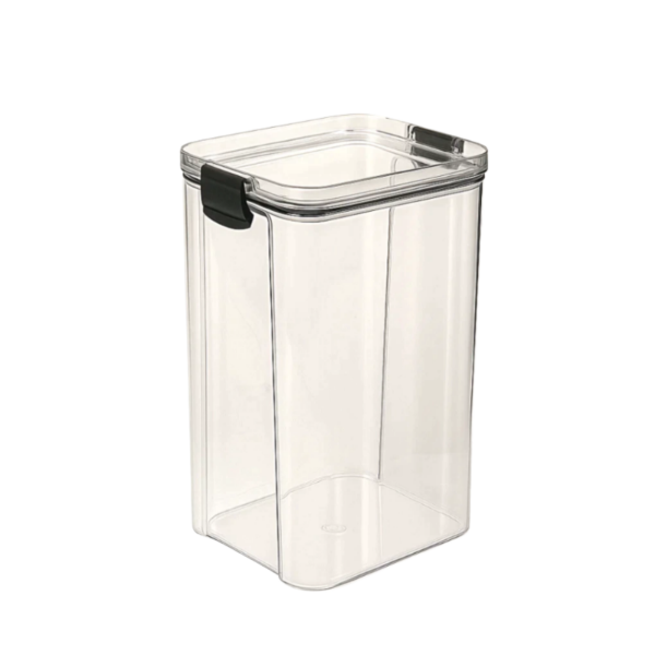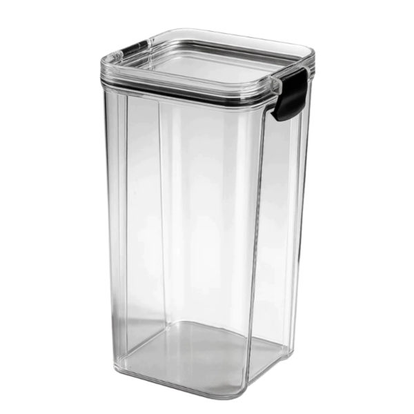 Su diseño transparente permite identificar rápidamente el contenido y controlar las cantidades disponibles, facilitando la organización diaria de la alacena, despensa o mesada.
