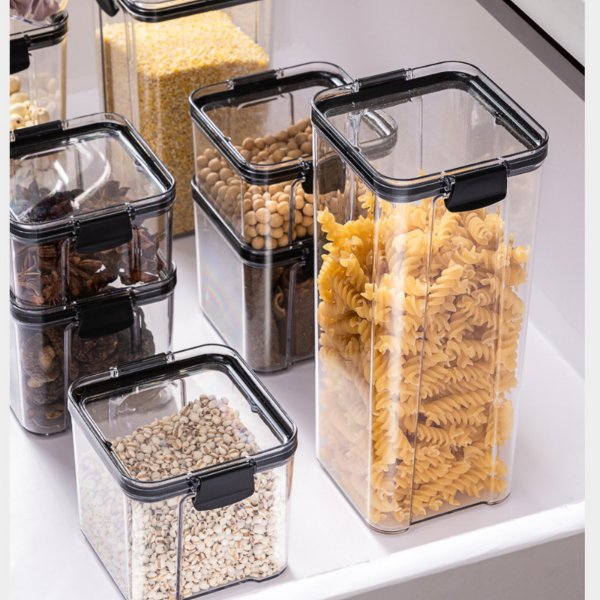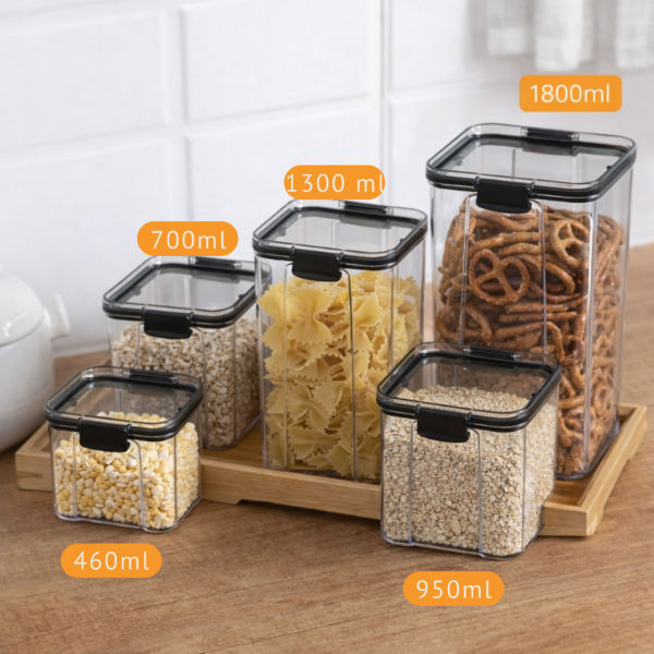 Su estructura permite almacenar distintos alimentos de manera ordenada, evitando bolsas abiertas, derrames o desorden dentro de la alacena.