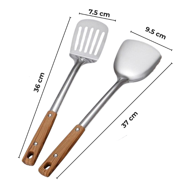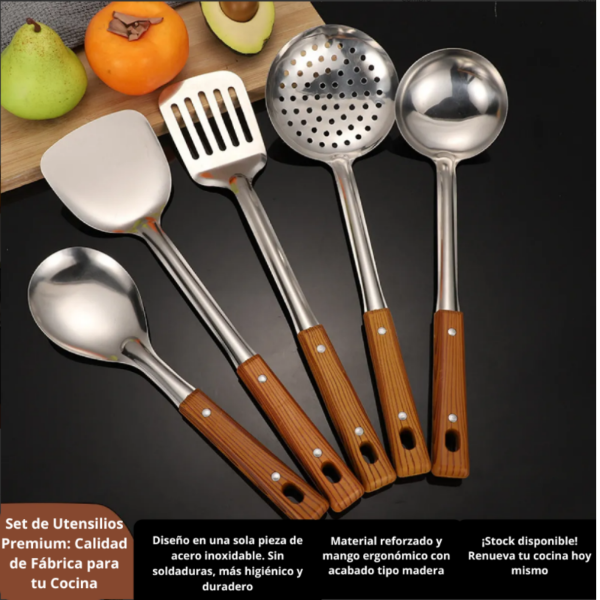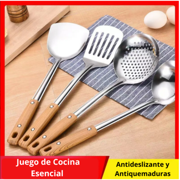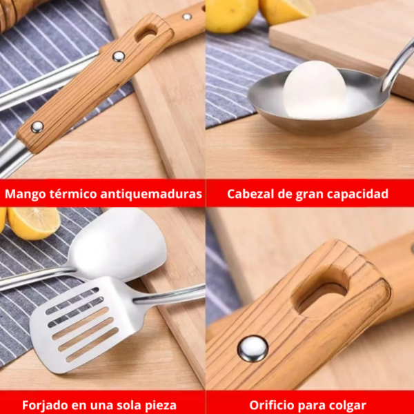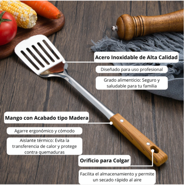 Cada utensilio está pensado para brindar un agarre cómodo y seguro, permitiendo manipular alimentos con mayor facilidad durante la preparación.