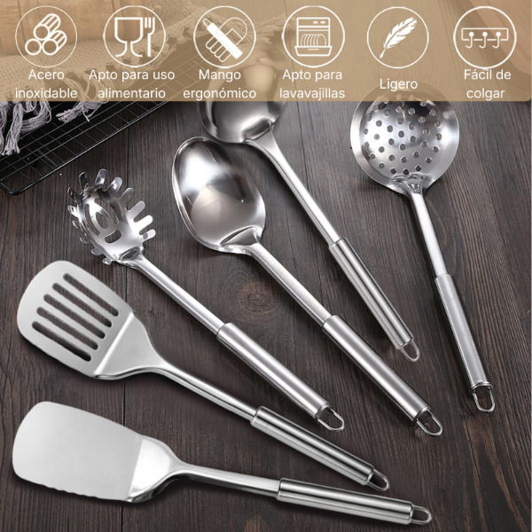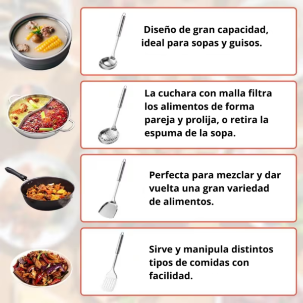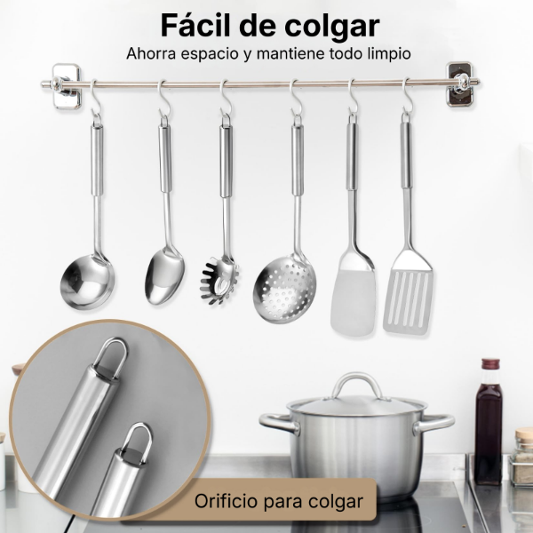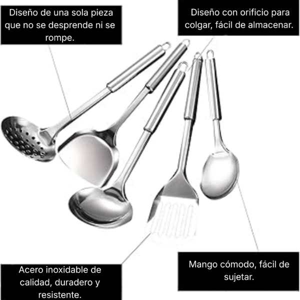 Cada utensilio está pensado para facilitar distintas tareas de cocina, brindando comodidad y practicidad al momento de preparar tus comidas.