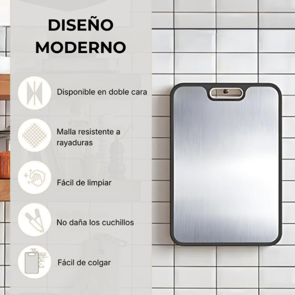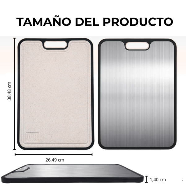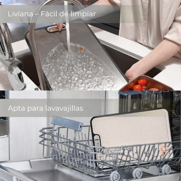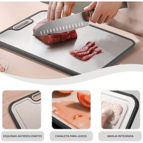 Esta tabla doble cara es una excelente opción para quienes buscan un accesorio resistente, higiénico y cómodo para cocinar todos los días con mayor eficiencia.