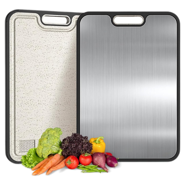 Prepará tus alimentos con mayor practicidad, higiene y comodidad con esta tabla de cocina de doble cara, diseñada para ofrecer una superficie versátil y funcional en el uso diario.