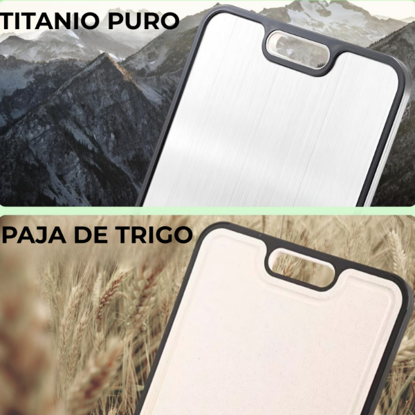 La cara plástica es ideal para preparaciones diarias, mientras que la cara metálica ofrece mayor resistencia para cortes y usos que requieren una superficie más firme.