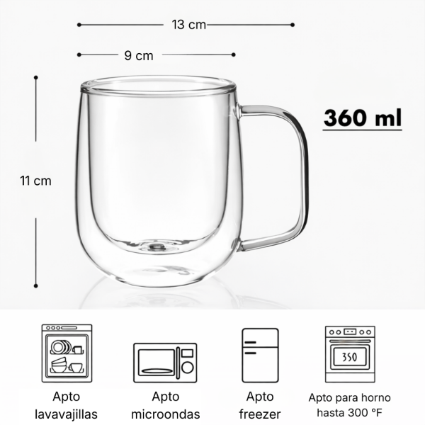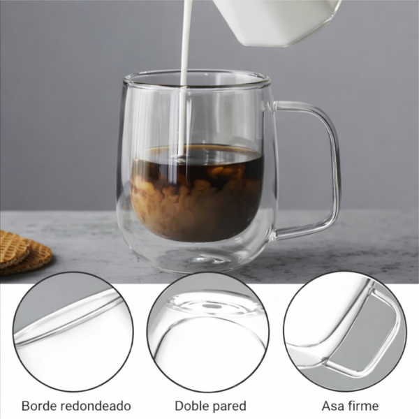 Además, su doble vidrio ayuda a mantener mejor la temperatura y brinda una experiencia más cómoda al tomar.