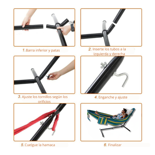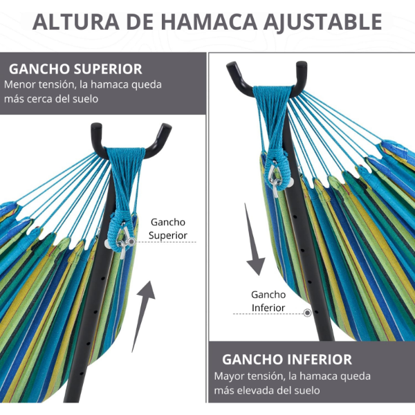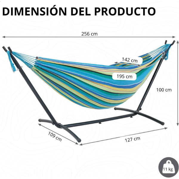 Gracias a su estructura resistente y su formato envolvente, esta hamaca ofrece un soporte cómodo que se adapta al cuerpo y brinda una experiencia de descanso más placentera.